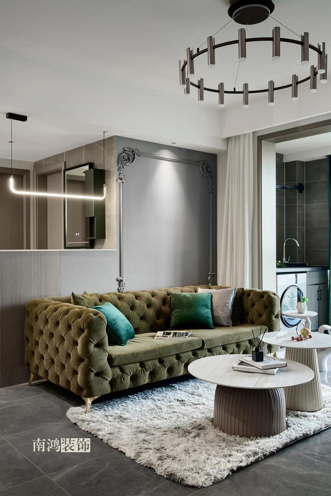 【項(xiàng)目·信息】 地址 / 世貿(mào)西西湖 戶(hù)型 / 三室兩廳 面積 / 91㎡ 風(fēng)格 / 現(xiàn)代法式 設(shè)計(jì)施工 / 浙江南鴻裝飾 本案為91㎡現(xiàn)代法式風(fēng)格作品。現(xiàn)代法式摒棄傳統(tǒng)法式繁復(fù)、冗雜的裝飾造型與甜膩的色澤,通過(guò)淡雅的色調(diào),簡(jiǎn)潔的幾何線條和典雅時(shí)尚的陳設(shè)軟裝,來(lái)打造更符合現(xiàn)代人喜好的生活空間。 業(yè)主夫妻倆,一位是性格沉悶的工程男,一位是熱情開(kāi)朗的設(shè)計(jì)女,彼此志趣相投,性格互補(bǔ),優(yōu)雅的法式,給這個(gè)甜蜜小家庭增添了更多美妙情趣~ ▲原始結(jié)構(gòu)圖 ▲平面設(shè)計(jì)圖 ①衛(wèi)生間做干濕分離。 ②兒童房的門(mén)洞方向更改,完整電視背景墻效果。 ③主臥和次臥交換位置,次臥陽(yáng)臺(tái)打通。 ④縮小主衛(wèi)面積,墻體后退得以嵌入一個(gè)大衣柜。 入戶(hù)門(mén)進(jìn)來(lái)即見(jiàn)餐廳。戶(hù)型面積不大,公區(qū)域都盡量打開(kāi)讓視野更開(kāi)闊。 硬裝整體簡(jiǎn)潔,墻面可見(jiàn)石膏線花紋裝飾,借此強(qiáng)化一定法式空間意象。餐桌椅、吊燈的造型選擇也都偏現(xiàn)代,空間中奢與簡(jiǎn)的分寸把握得恰到好處。 綠色作為本案的點(diǎn)綴色,可以說(shuō)貫穿了幾乎各個(gè)分區(qū)之中,鮮活的生命力讓人過(guò)目難忘。 客餐廳一體式設(shè)計(jì)是小戶(hù)型的常見(jiàn)選擇,也更符合現(xiàn)代人的生活習(xí)慣。灰白主色保持整體低調(diào),局部墻面以飽和度高的綠色乳膠漆涂刷,空間被提亮不少。 客廳采光良好,沙發(fā)背景墻連接干區(qū)的位置做一個(gè)小的半高柜,提升空間利用率。軟裝家具布置則用簡(jiǎn)潔的設(shè)計(jì)手法將法式的古典優(yōu)雅和現(xiàn)代的簡(jiǎn)約時(shí)尚相結(jié)合,使得空間既有休閑感受,又不乏藝術(shù)氣息。 經(jīng)過(guò)設(shè)計(jì)調(diào)整,電視背景墻的效果更加完整,深淺色調(diào)做左右兩塊分界,以石膏線裝飾則更顯精致。 拱形門(mén)洞也被應(yīng)用在這里,作為歷史悠遠(yuǎn)的一種經(jīng)典建筑元素,本身就很契合各種帶古典意味的家居風(fēng)格。 廚房以長(zhǎng)虹玻璃門(mén)隔絕油煙,保證內(nèi)部的私密性,也實(shí)現(xiàn)了采光的通透感。冰箱被移至過(guò)道,釋放內(nèi)部更多空間。 廚房采用U型布局,動(dòng)線流暢,烹飪區(qū)、操作臺(tái)和洗滌區(qū)都有各自獨(dú)立的空間,互不打擾。 主臥,青草綠墻布做背景裝飾,留白保持簡(jiǎn)約調(diào)性,一幅婚紗照訴說(shuō)著夫妻二人簡(jiǎn)簡(jiǎn)單單、明明白白的甜蜜愛(ài)情故事。 光源除主燈外,床頭兩側(cè)各有布置,一邊長(zhǎng)臂燈一邊吊燈的不對(duì)稱(chēng)設(shè)計(jì),讓臥室空間顯得更加有趣,金屬材質(zhì)呈現(xiàn)輕奢美感。 長(zhǎng)輩房的背景、色彩選擇需要貼合老人的喜好,選用橙色主色,帶來(lái)如陽(yáng)光般的燦爛、溫暖感受。 夫妻二人目前還沒(méi)有孩子,這個(gè)房間預(yù)備做以后的兒童房,布置相對(duì)簡(jiǎn)單,方便將來(lái)調(diào)整。 衛(wèi)生間將干濕區(qū)域分離,洗漱臺(tái)盆柜、壁柜與旁邊打造出的半高柜體可將瓶瓶罐罐都收入其中,保證視覺(jué)上的清爽。