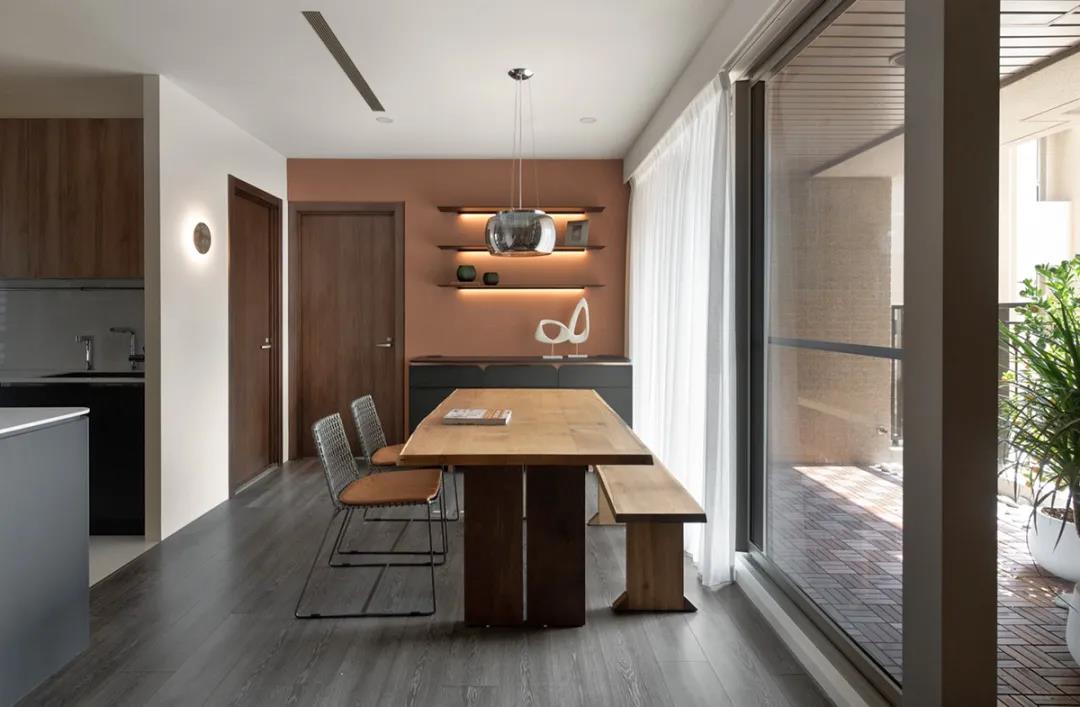 將吧臺與餐桌結(jié)合的設計相當美觀,無論是就餐還是品酒,都讓生活充滿了情調(diào),適合單身或是兩個人住的家庭。